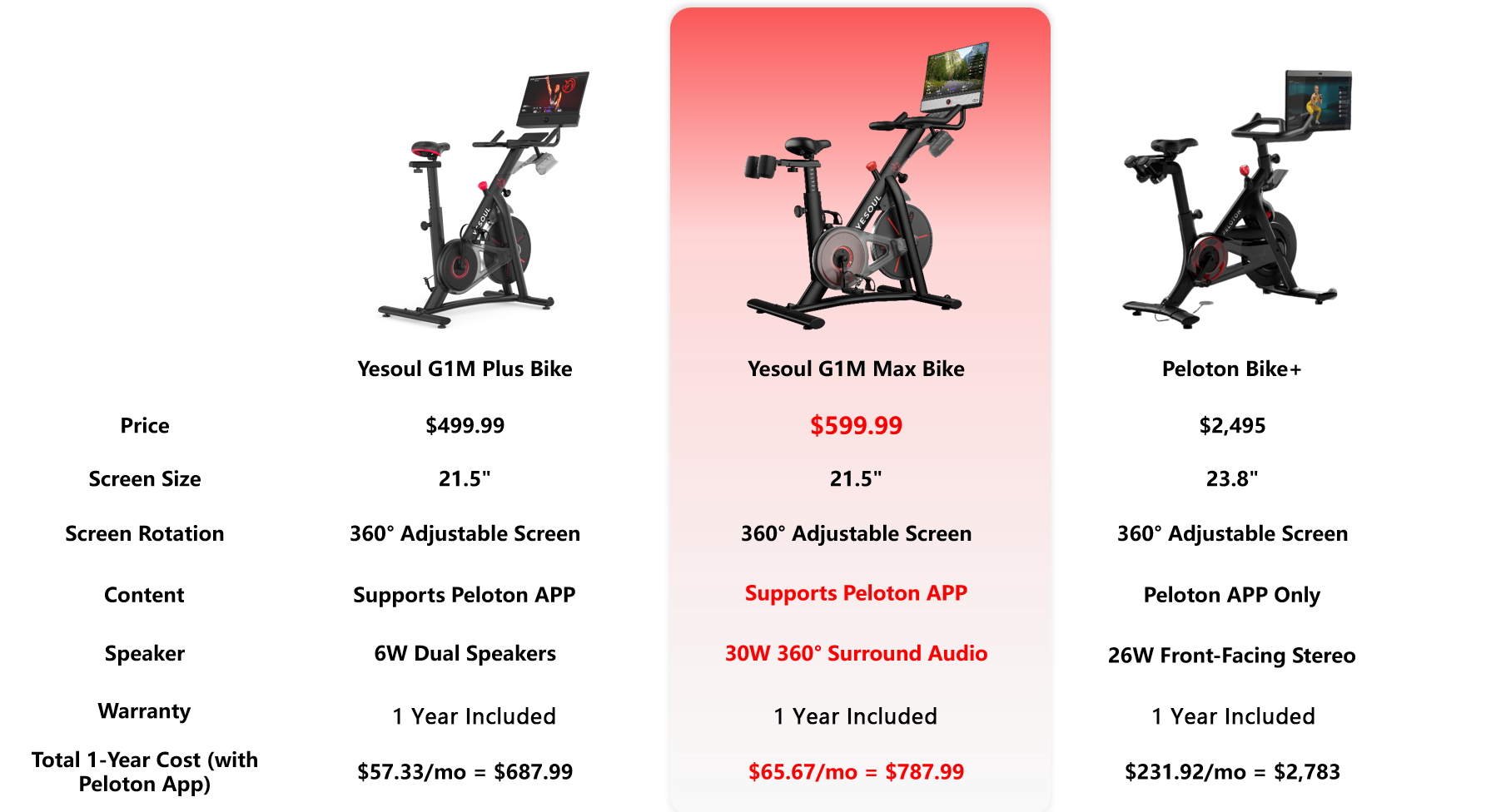 I was skeptical at first, but after one month, I’m in love. Yesoul works perfectly with my favorite Peloton classes and even lets me stream YouTube workouts. It feels like total freedom!